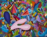 제유성의 이런 형상들은 색채와 분리해서 생각할 수 없을 정도로 서로 ‘들러붙어’ 있다. 색채가 풍부해질수록 형태 또한 견고해지고, 색채가 굳건해질수록 형태는 유연해지는 것이다. 다시 말해 그가 사용하는 색채와 형태는 서로가 서로를 강렬하게 원하기 때문에 어떤 필연적인 단단하고 견고한 관계를 형성하고 있는 것처럼 보인다는 말이다. 더군다나 화면에서 느껴지는 아기자기한 동시에 역동적인 리듬감은 미스테리의 세계로의 여행을 훨씬 더 감칠맛 나게 만드는 것이다.