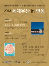 가. 전시명 : 안동하회마을 유네스코 세계유산등재 3주년 기념전시회「2013 세계유산 in 안동 展 」