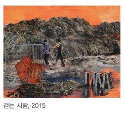 최근의 그림 <걷는 사람> 연작에는 개발의 속도에 반하는 아이콘으로서의 ‘걷는 사람’이 도시풍경 속에 등장한다. 전시될 작품은 소재가 되는 장소에 따라 두 그룹으로 나뉘는데, 첫 번째는 서울 진관동의 철거지역을 소재로 한 일련의 그림이고 두 번째는 베를린 오스트반호프(Ostbahnhof) 근방 이곳 저곳의 재개발 지역을 담은 회화 시리즈이다. 진관동은 15년 전 서울시 뉴타운 건설사업의 대상으로 지정되어 이후 고층아파트 단지로 재개발된 곳이다.