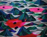 어린 시절 수영을 배울 때 겪은일로 물에 대한 트라우마가 생긴 나는 수영을 잘 하지 못한다. 물속에 쑥 빨려 들어가 숨이 막혀 서서히가라앉는 모습이 떠올라 견딜 수가 없다. 그래서 더욱 물을 그리고 싶은 지도 모르겠다. 그림 속의 물은 나의 아픈 곳을 씻어 내리고, 산을 따라 흘러 계곡이되고 강이 되어, 나를 새로운 세계로 흘려 보낸다. 산은항상 그 자리에 서서 지켜보고 있다. 마치 변하지 않는 ‘진심’과 같다. 집은 ‘나의모습’이기도 하다. 가시나무가 자라거나 창문 하나 없이 깜깜하기도하고, 입구에 서서 밖을 향해 뛰어나갈까 망설이기도 한다.