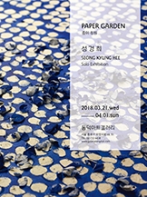 봄날 바람에 가볍게 흩어져 날리다 모든 바닥에 달라붙은 그얇고 보드라운 벚꽃 잎 같은 원형의 종이가 무수히 매달려있다. 흡사 겹겹이 쌓여가는 낙엽 같기도 하다. 그런가하면 제각기 달리 물든 단풍잎들이 가지런히 누워있는 마당을 연상시킨다. 그러나 성경희의 작업은 구체적인 대상을 재현한 그림이 아니라 종이로만 이루어진 콜라주다. 물론 약간씩 칠해지고 남겨진 종이의 잘려진 부분 들, 조심스레 벗겨지고 뜯겨진 피부들, 그만큼 제각기 다른 형상을 지닌 장지의 피부와 살들이다. 투명하리만큼 맑은 단색으로 마감된 캔버스 표면에 하나씩 오려 부착된 원형에 가까운 무수한 형태를 지닌 물질은 장지의 질감과 색채로만 혹은 제한된 단색의 물감 흔적을 슬그머니 상처처럼 간직하고 처연히 누워있다. 유심히 들여다보면 그 종이의 얇은 피부/살은 저마다 달리 칼로 뜯겨져 있어서 그만큼 풍부하고 다채 로운 색감, 표정, 질감을 안겨준다. 그림을 이루는 재료들이 지닌 물성과 존재성을 지극히 예민하게 피부화 시키는 작업이다. 이 작업과정에는 캔버스와 장지라는 재료의 선택과 그 위에 색채(붓질)의 침윤, 그렇게 본래의 종이와 부분적으로 착색된 종이를 오려서 가장 기본적이고 기하학적인 형태를 지니면서도 부단히 그 윤곽이 무너지는 형상을 가시화하는 일, 그리고 그것들을 납작하게 표면에 붙이는 이른바 콜라주작업, 그리고 다시 그 콜라주 된 종이의 피부를 하나씩 벗겨내거나 뜯어내는 탈각의 절차가 복합적으로 숨 쉬고 있다. 주어진 물질의 본래 상태를 유지하고 그것을 최대한 존중 하는 동시에 여기에 최소한의 인위적인 개입을 덧대고 이를 다시 조금씩 흔들고 해체 해서 균형과 질서 안에서 무수한 변수가 들락거리도록 허용하고 있는 것이다.