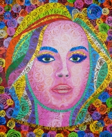 팝가수 ‘아델’ 그림은 그녀의 삶이 장밋빛 인생처럼 행복하기를 바라며 모든 것을 장미꽃으로 작업을 할때 작가가 직접 고안한 다양한 모양의 장미꽃 틀을 이용하여 처음으로 쉐잎아트를 활용하여 작품을 완성하였다. 이후 글자, 도형, 선, 면 등을 활용한 다양한 작품으로 꽃과 별, 글자로 사람을 그리는 그림이 그때부터 시작되었다. 사람마다 느껴지는 느낌이 달라서 포커카드로 사람을 그리기도, 진한 선으로만 화면을 채우기도 하면서 생명을 그려나갔다.