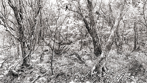 “하얀 종이 위에 검은 그믓(선)을 그으며 지난하게 살아온 사람들과 뭇 생명들의 이야기를 기록합니다.” _작가의 말