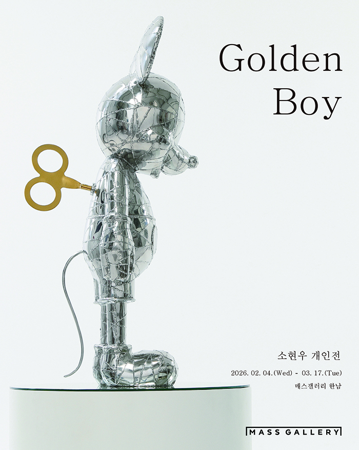 매스 한남에서의 이번 전시 <Golden Boy>는 성공과 기대를 상징하는 '황금빛' 아이콘을 통해, 촉망받는 존재가 어떻게 시스템에 의해 구축되고 유지되는지를 노골적으로 드러낸다. 캐릭터들은 놀이의 형식을 띠고 있으나 순수와 잔혹함의 경계에 머물며 쉽게 규정되지 않는다. 이는 단순한 시각적 재현을 넘어, 현실이 이미지에 의해 조직되고 대체되는 방식을 보여주는 비판적 선택이다.