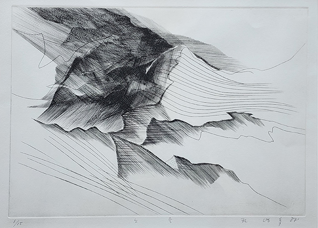 권녕숙(리디아, 1938-), 노을, 1987, 판화 인그레이빙, 33x46cm