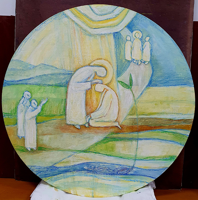 김겸순(마리 테레시타 수녀, 1956-), 희망의 순례, 2025, D63cm, 캔버스에 유채, 혼합재료