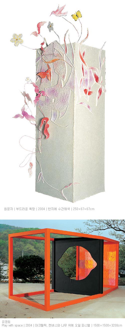 이번 전시에서 7인의 작가들은 나름의 조형언어로 인간과 자연의 부드러운 욕망을 변주해보이고 있다. 석란희의 작품에서 복잡해 보이는 자연의 프랙탈적 질서를 발견할 수 있다면, 조문자의 작품에서는 한국인 특유의 情恨의 정서를 여과 없이 풀어내는 원초적인 몸짓을 볼 수 있다. 그리고 유영희의 작품에서는 자연에 동화된 신체의 식물적 리듬과 유희를 즐겁게 만날 수 있다. 이들이 공통적으로 대자연과 신체의 리듬을 동화시켜 드로잉적으로 표현하고 있다면, 원문자와 송수련은 한지를 통해 한국인 특유의 은은하고 소박한 정서를 드러내고 있다. 원문자의 작품에서 조선 백자에서 느껴지는 우아한 격조와 따스한 포용력을 재발견할 수 있다면, 송수련의 작품은 분청사기의 질박함과 순환적 생명력을 환기시켜 준다. 이들과 달리, 최수화와 김수자는 자신의 일상적 내면에 주목하여 여성으로서 느끼는 섬세한 감수성을 자전적으로 풀어내고 있다. 최수화의 작품에서 생물화된 사물과 식물화된 인간의 정겨운 속삭임을 해학적으로 만날 수 있다면, 김수자의 작품은 존재와 부재 사이에서 부유할 수밖에 없는 인간의 본질적 실재를 사유하게 한다.