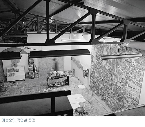 이승오 역시 이러한 관점의 변화를 시도한 예를 보여주는 작가로 먼저 언급해야겠다. 종이라는 결코 특별하거나 탁월한 재료를 선택하지 않은 그이지만 이 전시에서 그가 보여주고 하는 것은 바로 관점의 문제다. 보다 엄격하게 말하자면 사물을 바라보는 ‘방향’의 문제인데 이 글에서는 작가가 어떠한 관점에서 나름의 새로운 시각을 형성하고 있는지에 대한 논의의 자리가 될 것이다.