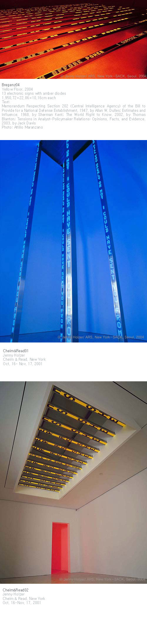 Holzer's recent publications include Jenny Holzer: Neue Nationalgalerie Berlin (2001), Jenny Holzer: Xenon (2001) and Truth Before Power, a catalog published on the occasion of an exhibition of the same name at Kunsthaus Bregenz in 2004.