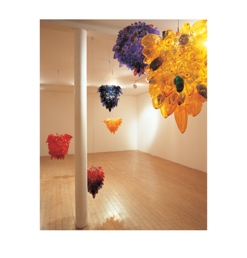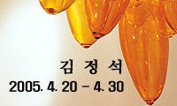 이번 전시를 통해 김정석은 유리조형가로서 전문 영역을 확고하게 구축하고자 한다. 국내에서 갖는 개인전으로는 세 번째인 이 전시에서 그는 예전 작업의 특징이었던 다양한 재료와 풍부한 문학적 내러티브의 결합을 거의 배제한 채 유리라는 질료를 형식과 내용의 본격적인 중심으로 제시하고 있다. 전시장에는 형형색색의 유리알들이 공중을 부유하듯 매달려 있다. 그것들은 빛을 반사하고 투과함으로써 다양한 색채들을 만들어 낸다. 한편으로 장식충동을 자극하는 현란하고 탐스러운 형태를 한 이 유리알들은 다른 한 편으로는 빛의 알갱이들을 모아 놓은 것 같기도 하고 생물체의 알들이 영롱하게 비춰지는 듯도 하며 빛의 열매들이 결실을 맺은 것처럼도 보인다. 어떤 식으로든 김정석의 유리알들은 모두가 광명과 광채의 기원인 태양을 암시하면서도 그것을 생명성과 결실, 다채로움과 풍요의 이미지로 변형시키는 조형적 성형의 결과물이다.