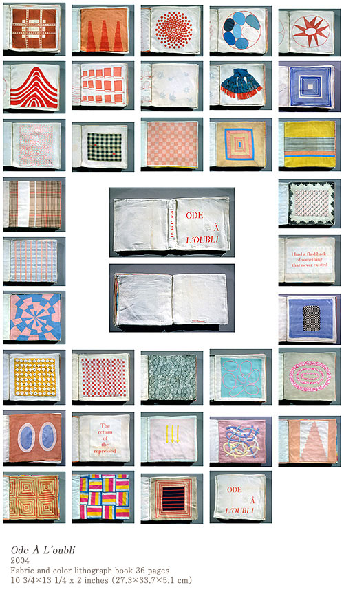 국제 갤러리의 이번 전시에는 드로잉 작품들뿐만 아니라 천 조각에 석판으로 이미지 찍고 손바느질을 곁들여서 만든 책 형식의 작품도 출품된다. 총 36 페이지로 이루어진 이 책은 바느질을 치유와 용서의 행위로 여겼던 작가의 인식을 드러내며 조각과 평면의 경계를 허문다. 이외에 공간과 사물의 독특한 구성을 통해 강한 상징성을 드러내는 조각 작품도 한 점 선보일 예정이다. 드로잉으로 표현될 때나 조각의 형식을 사용할 때나 그녀의 작품은 항상 우리가 일상 속에서 겪는 사랑과 고통, 고독의 드라마를 담고 있다.