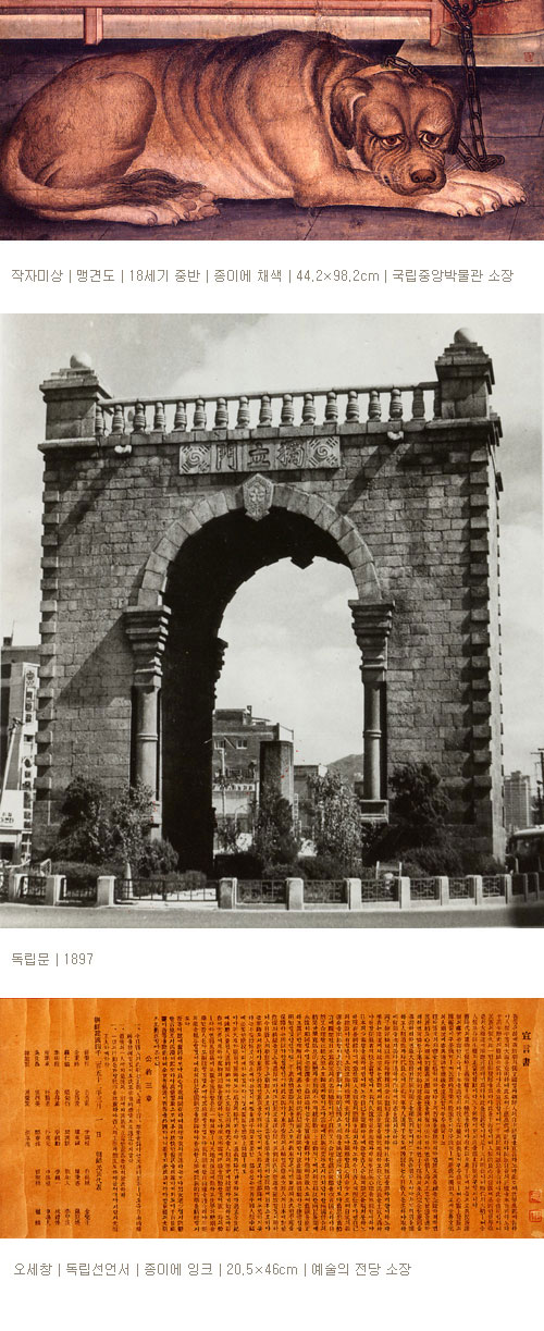 ≪한국미술 100년≫전은 광복 60주년을 기념하여 ‘은둔의 나라’에서 세계 속의 국가로 성장하기까지 1세기 동안의 한국 미술을 대상으로 기획되었다. 금년에는 1905년부터 1959년까지의 미술을 다룬 ≪한국미술 100년≫전(1부)이 열리고, 내년에는 1960년부터 2005년까지의 미술을 다루는 ≪한국미술 100년≫전(2부)이 개최될 예정이다. 지난 100년은 고난과 시련으로 점철된 역사였으며, 그러한 사회·문화적 굴곡 속에서 미술 또한 다양한 변화를 거쳤다. ≪한국미술 100년≫전(1부)은 이러한 굴곡의 역사와 함께한 시각문화로서의 미술을 살펴보기 위하여 중요한 역사적 사건을 기준으로 다섯 시기로 나누어 구성되었다. 조선왕조 미술과 근대 미술과의 연속성 및 변모 양상은 1876년부터 1905년까지를 다룬 「전사前史」를 통하여 파악할 수 있다.