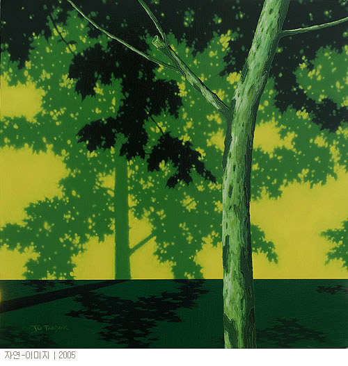 주태석은 주로 기찻길등 일상생활속의 대상을 사실적으로 표현해오다 87년부터 현재까지 나무와 숲을 대상으로 ‘자연-이미지’연작을 그려왔다. 작가는 70년대 추상미술이 화단을 지배할 때 묵묵히 사실주의를 지향해왔으며 한국 극사실회화의 대표작가로 27번의 개인전과 다수의 단체전을 통해 대중과도 친숙한 작가다.
