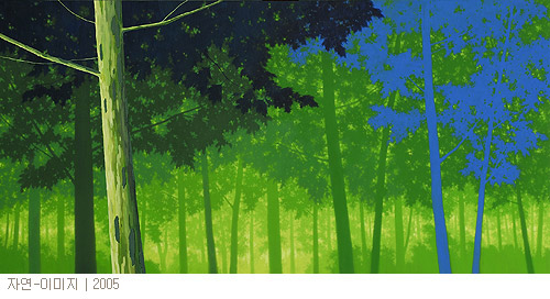 70년대 중반 선보였던 ‘기차 길’ 연작이 대상에 대한 치밀한 묘사가 주 였다면 80년대 말 이후 등장한 ‘자연_이미지’연작은 기계적 재현에서 벗어나 자연주의 미학을 바탕으로한 감성적 작품이다. ‘자연_이미지‘는 전면에 나무와 나뭇잎, 풀잎 형상을 세밀한 부분까지 묘사하고 뒷배경에 해당하는 그림자와 숲은 에어브러쉬를 이용해 서서히 풀어지는 느낌으로 표현한다. 이는 아웃포커싱 기법의 응용으로 가까이 있는 물체는 정교하게, 멀리 있는 풍경은 단순하고 흐릿하게 표현 하는것을 말한다. 사진가들이 자주 사용하는 기법이긴 하지만 작가는 사진처럼 대상을 묘사하되 대담한 색채와 극적인 화면분할의 두 요소를 적절히 강조하여 사진의 그것과 차별한다.