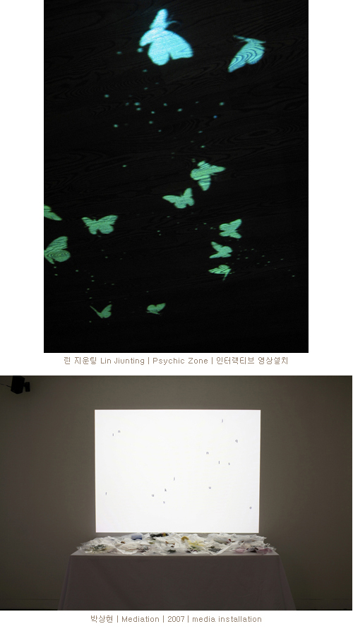 대만과 중국에서 활동하고 있는 영상작가 린 지운팅의 은 꽃과 나비의 영상 이미지를 통해 생물계에서의 생식의 미끼인 달콤한 향기를 연상케 하는 인터랙티브 영상 작품이다. 전시장 입구에 들어서면 관람자의 신체 반응에 따라 수십 마리의 나비 영상이 출현한다. 나비의 방을 넘어서는 어두운 땅속에서 솟아 오른 듯한 한 송이 꽃 오브제가 피어있는 또 다른 방과 마주치게 된다. 나비는 꽃의 향기를 탐한 듯 그 향기에 취한 듯 이름 모를 꽃잎을 향해 날아들듯 보이며, 관객은 나비와 꽃의 존재를 통해 무취의 방에서 후각을 자극받게 된다. 원래 은 호접지몽(胡蝶之夢)에서 연유한다. 장자와 나비를 분간하지 못하는 이러한 물아일체의 메타포는 관객의 몸에 나비 영상이 스며들어 이를 촉각적으로 지각하게 되는 인터랙티브 영상에서 표상된다. 그리고 나비가 투사된 그의 몸은 어느덧 향기를 내뿜는듯한 꽃으로 향하게 된다.