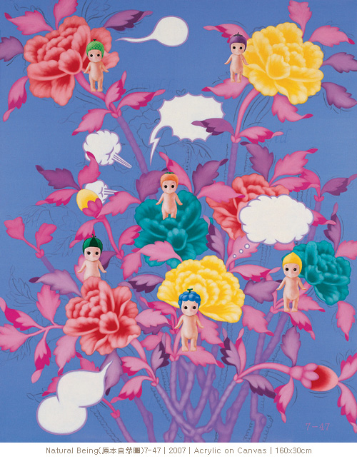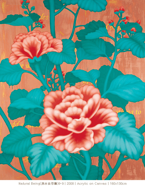 모란꽃밭에 이르기까지 김근중은 참으로 많은 시도와 방황의 세월을 보냈다. 그는 원래 고구려와 돈황 벽화를 기본으로 한 벽화작업의 형상시기(1990-2002)를 기초적 토대로 삼아 작가적 입문을 했다. 그러다가 3년 정도 형상을 배제한 미니멀 시기를 거쳤다. 형상을 버렸다가 다시 찾은 형상, 그것은 놀랍게도 원색의 화려한 화조 즉 모란이었다. 2005년 이래 그는 전통 화조화와 민화를 기본으로 하여 현대적 모란도를 생산해 내고 있는 중이다. 하지만 그의 모란도는 사실 모란만의 꽃 그림이 아니다. 제작에 임하는 그의 기본자세는 동양정신의 본질에 대한 탐구이다. 이것의 구체적 구현은 그가 즐겨 작품 제목으로 내세우는 ‘Natural Being(原本自然圖)’이다. 바로 존재에 대한 물음인 것이다. 존재라는 화두는 구체적인 형상으로 나타날 수도 있고, 아닐 수도 있다. 그러니까 존재는 꽃으로 화현될 수도 있고 아닐 수도 있다. 자, 김근중에게 있어 모란은 단순히 외형적 형상으로서의 모란에 그치는 것이 아니다. 그는 모란이란 일차적 외형을 통해 존재에의 사유와 발언을 화폭에 담고 있는 것이다. 작가는 <꽃 세상>이란 어록에서 다음과 같이 말한다.