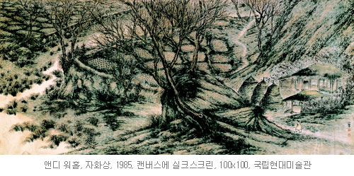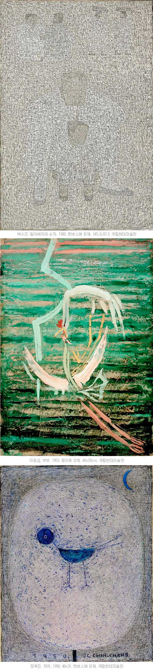 컬렉션, 미술관을 말하다_회화 / 제4전시실20세기 전반기 한국 근대회화의 선각자들은 일제의 강점과 광복, 전쟁과 분단이라는 격동의 세기를 겪으면서 새로운 예술 경향을 습득하고, 한국적 정서와 체질에 맞는 회화의 정착을 모색하였다. 한국현대회화의 본격적인 전개는 1950년대 말 기성 화단의 보수적 아카데미즘에 반기를 든 젊은 작가들의 집단적 표현이었던 앵포르멜 추상으로부터 시작되었다. 이 시기를 통해 한국의 현대회화는 자생적 성장과 발전의 기반을 다지게 되었으며, 1970년대 한국적 사유와 감성의 표현으로 인정받는 모노크롬(단색조) 회화, 1970년대 말 형상미술의 부활을 보여준 극사실주의 회화, 1980년대 혼란했던 사회 현실을 반영한 민중미술 등 다양한 방식으로 전개되었다. 1990년대 이후 한국현대회화는 포스트모더니즘의 경향으로 인한 개별화와 다양한 장르와의 유연한 혼용, 국제적으로 활동 무대를 넓힌 젊은 작가들의 독창적이며, 개성적인 작품들이 공존하는 모습을 보여주고 있다.