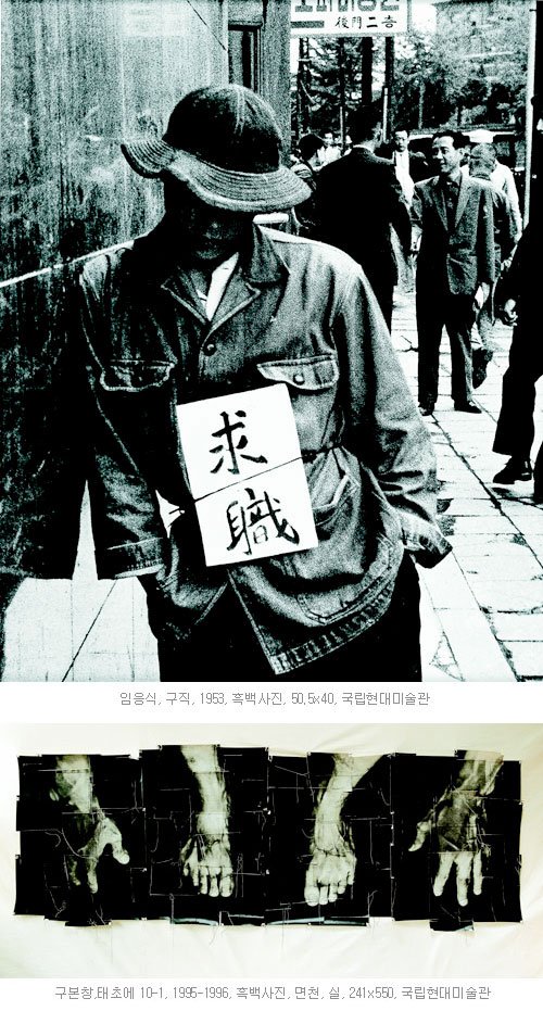 컬렉션, 미술관을 말하다_사진 / 제6전시실한국현대사진의 본격적인 태동은 1950년대를 기점으로 급격하게 변화된 사진가들의 새로운 시각으로부터 시작되었다. 20세기 초반의 사진들이 심미적인 살롱사진(회화주의)의 한계를 지녔던 것에 비해, 해방의 혼란과 전쟁의 처참함을 체험한 사진가들은 피폐한 사회적 현실을 인식하고 사진의 기록적 가치를 부각시킨 리얼리즘 사진을 시도하였다. 임응식, 이형록, 정범태 등은 ‘생활주의 리얼리즘’이라는 집단적인 사진 창작 태도를 통해 독자적인 사진의 위상을 구축했다. 1970-80년대를 거치면서 한국현대사진은 객관적 현실 인식과 기록성을 보여준 전형적 리얼리즘 방식을 탈피하여 사진가 주체의 독자적인 시각과 피사체에 대한 과감한 접근이 돋보이는 작가주의 사진으로 확대되었다.