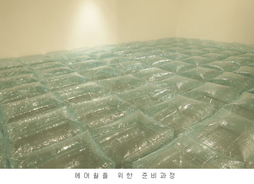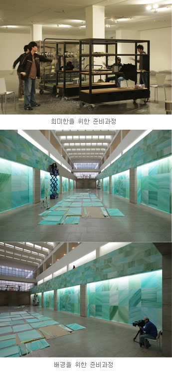 이번 전시는 국립현대미술관의 제 2전시실과 중앙 홀 전체 2000㎡(605평)에 미술관 공간을 소재로 배경(Scenery), 희미한(Dim), 에어월(Airwall) 3점과 그의 작품세계를 조명하는 다큐멘터리 영상이 소개된다. 2,000m의 비닐 시트지에 두 달여간 시도한 드로잉으로 중앙 홀 내벽을 감싸거나, 두께 0.2mm의 스텐선 2t분량을 풀고 쌓아 올리기 위하여 10여 명의 인원이 보름 동안 투입되어 전시실을 가득 메우는 작품들을 통해, 작품과 작품이 놓인 공간, 공간 속에 포함된 관람객까지 작품의 일부가 되도록 하는 작가 작업의 특성을 보여줄 것이다. 따라서 그의 작품은 관람객들이 단지 바라봄으로써 작품을 이해하던 감상 방식에서 벗어나, 자신의 움직임은 물론 촉각과 때로는 청각 등 모든 감각을 동원하여 변모된 공간을 인식해야한다. 작품 속에 들어가 자신의 신체와 인식 작용을 통하여 변모된 공간을 인지하는 관람객은 그의 작업에 있어 주요한 요소가 된다.