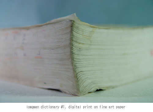 그런 사진들에 애써 그 어떤 의도나 의미를 부여하고 싶지 않다. 다만 내가 책을 보며 그러했듯이 책과 관계된 개인적 경험들 예컨대 책을 보는 버릇이나 기록하는 행위, 페이지 넘김, 보관하는 방식 등과 같은 물리적 요인들과 시간의 축적과 함께 내재된 기억의 단편들로 책 자체가 가지는 변이와 의미에 대하여 사유의 시간을 가져보길 바랄 뿐이다. 사실은 이마저도 필요치 않을 수 있다.