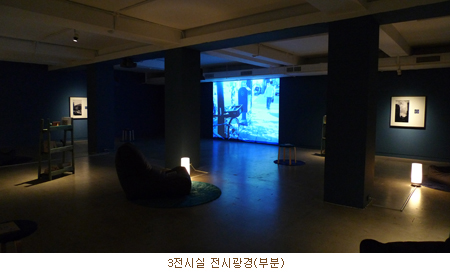 3층은 '혁명 만세, 바다가 없는 바다의 이야기'를 접하는 곳입니다. 이를 테면 1층에 있는 하나의 작은 그릇 안으로 관객들을 초대하는 개념입니다. 1층이 쿠바에 대한 소개나 전체적인 임팩트를 던지고 있다면, 이곳은 쿠바 체험을 마친 관객들에게 또다른 쿠바, 작은 접시, 작은 바다에 직접 한번 들어와 볼 것을 권하는 공간입니다. 책도 보고 사운드를 듣거나 비디오를 보면서 바다에, 그릇에 잠시 들어와서 머물고 나가는 개념입니다. 그곳에서 무엇을 느끼던 그것은 관객의 자유일 것입니다.