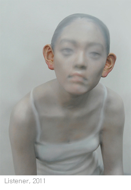 예로부터 ‘영혼의 거울’이라 불리며, 신체에서 특권적 지위를 차지했던 얼굴은 분명 서로 다른 눈, 코, 입이 존재하지만 개체의 특성을 드러내야할 요소들은 모두 흐릿하게 감추어진 채 날것의 덩어리로 제시된다. 가장 에너지가 넘칠 나이에 무엇이 이 아이들을 이토록 규격화 시킨 것인지, 가장 모범적인 천사이기를 강요받는 아이들의 ‘얼굴 없는 머리’는 그들이 입고 있는 선명한 컬러와 반짝거리는 의상과 묘하게 대조되며, 보이지 않는 힘을 여실히 드러낸다.