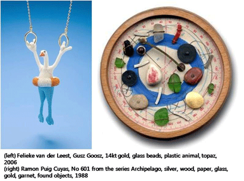 Alexander Blank, Alissia Melka-Teichroew, Andi Gut, Andrea Janosik, Anthony Tammaro, Arline M. Fisch, Arthur Hash, Beatrice Brovia, Beppe Kessler, Boris Bally, Bruce Metcalf, Caroline Broadhead, Constanze Schreiber, Daniel Kruger, Daniela Hedman, Daniella Kerner & Stanley Lechtzin, Donald Friedlich, Ela Bauer, Emiko Suo, Esther Knobel, Fabrizio Tridenti, Felieke van der Leest, Ford and Forlano, Francisca Kweitel, Gijs Bakker, Ineke Heerkens, Iris Bodemer, Iris Eichenberg, J. Fred Woell, Jane Adam, Jennifer Trask, Jiri Sibor, Joan Parcher, Joyce Scott, Kai Chan, Karin Seufert, Karl Fritsch, Katja Prins, Kiwon Wang, Lam de Wolf, Leonor Hipolito, Lucy Sarneel, Lydia Hirte, Maria Hees, Nadene Carr, Nel Linssen, Noon Passama, Nora Fok, Nuntaka Nopkhun, Pat Flynn, Ramon Puig Cuyas, Robert Ebendorf, Ruudt Peters, Sam Tho Duong, Shari Pierce, Suska Mackert, Atelier Ted Noten, Thomas Hill, Tiffany Parbs, Uli Rapp, Verena Sieber-Fuchs, Yoko Izawa (64 artists for 18 different countries of origin. over 300 pieces)