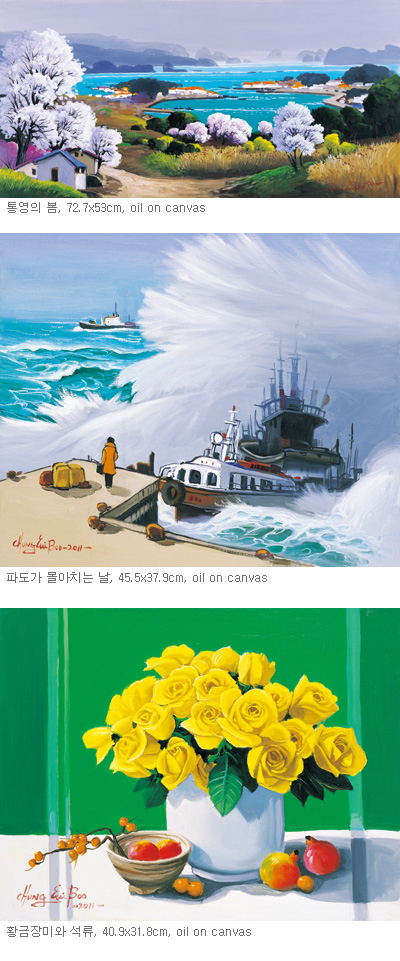 유화작품 80여점으로 주로 꽃과 철새작품으로 구성됨. 1실과 2실로 나누어 2실은 주로 소품들로 전시됨. 이번 전시는 화문집발간과 같이 하기 때문에 출판기념회와 전시가 동시에 이루어지는 것이 특징이다.