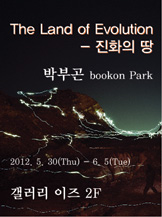 사진작가 박부곤의 개인전 <진화의 땅>이 2012년 5월 30일부터 6월 5일까지 갤러리 이즈에서 열린다. 박부곤은 3년여의 시간동안 우리나라의 경기서남부 지역을 중심으로 인천, 안산, 화성, 영종도, 김포에 이르는 방대한 지역을 사각 프레임속에 담았다. 이번 전시에서는 대표작품 '대지-The land','밤 빛-Urban light','트래킹-Tracking' 연작을 비롯한 사진 작품 40여점이 만들어 내는 웅장한 스케일의 컬러 풍경이 주된 전시구성이다. 작가의 시선에 비춰진 땅의 모습은 일방적인 개발과 착취, 소비와 파괴, 잦은 용도 변경으로 지도상의 표기조차도 지워져버린 불완전한 초상이다. 인간의 역사는 이미 주어진 땅위에 문명을 세우고 지우는 반복 과정이었다. 그리고 예술가들에게 자연은 텅빈 캔버스 또는 무한히 소유 가능한 자원으로써 논쟁 대상이다. <진화의 땅>에서 작가가 펼쳐보이는 땅의 모습 또한 다양한 이미지로 변주한다. 광대한 땅의 표면을 목도하고 있는 '대지-The land', 적막한 도시 주변부의 밤 풍경을 담고 있는 '밤 빛-Urban light', 작가의 물리적 흔적을 추적하고 있는 '트래킹-Tracking'연작들은 인간의 이상과 요구에 의해 변모해 온 자연환경에 대한 지각과 은유, 그리고 미래를 향한 진행형의 풍경을 보여준다. 박부곤의 <진화의 땅>은 최근 우리나라에서 벌어지고 있는 대규모 개발사업현장을 사진으로 기록한 아카이브적 가치와 더불어서 우리의 삶을 구성하고 있는 근원적 세계에 대한 깊은 성찰의 결과물이다. 특히 인공빛이 연출하는 강렬한 컬러와 자연간의 이질적 조합이 빚어내는 혼성의 풍경은 심미적인 동시에 장엄한 서사극으로 관객들을 인도한다.
